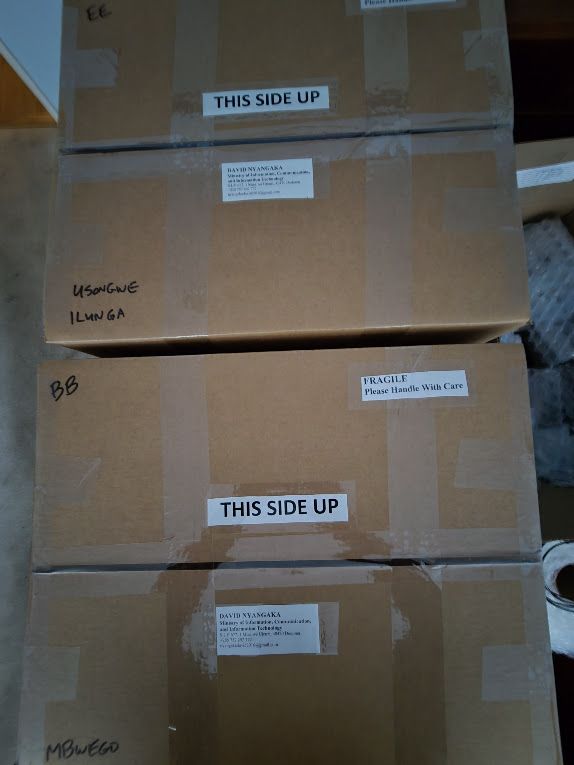 Reneal is so grateful for the continued support of Apto Solutions in 2025. 29 boxes of equipment are sitting here, ready for shipment to Tanzania for the 2025 Phase 1 projects. Ten additional public high schools in Tanzania will be receiving a computer lab, thanks to Apto Solutions!